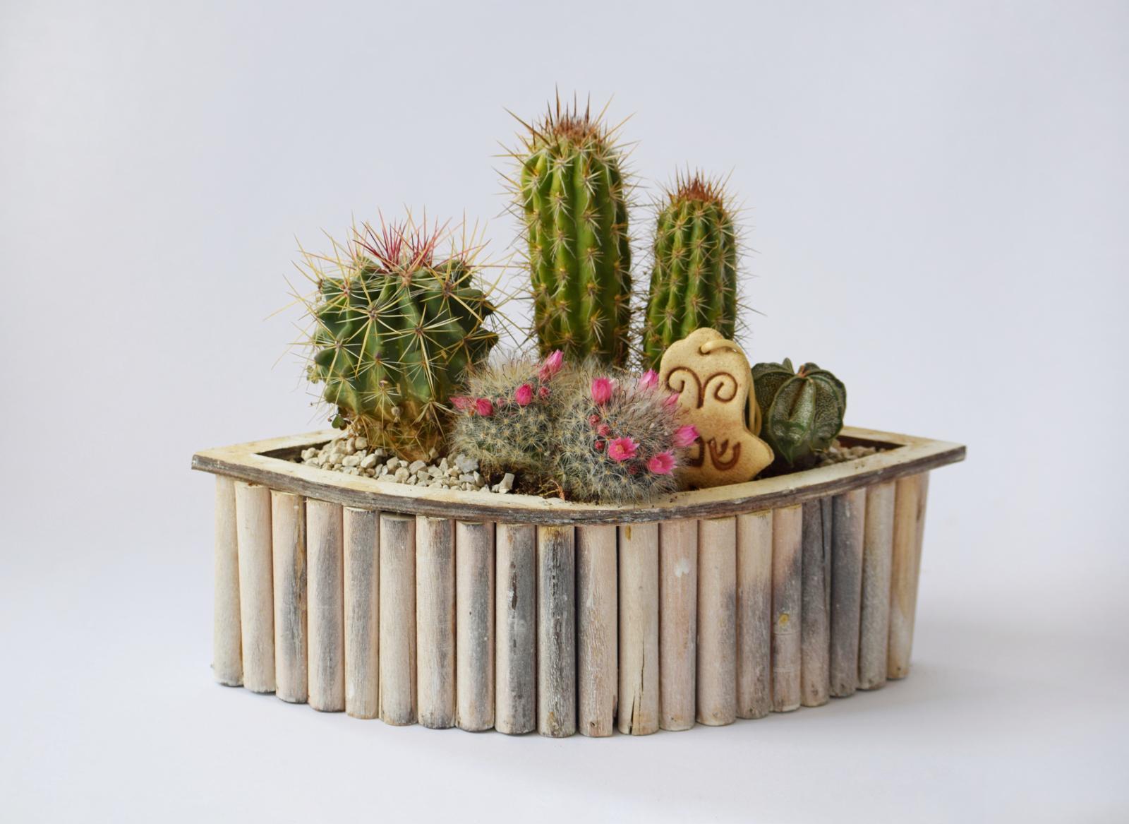 סידור סוקולנטים קטנים- אדנית עץ בצורת עלה